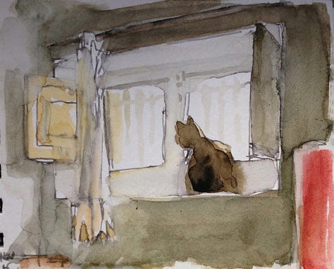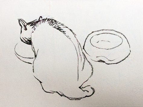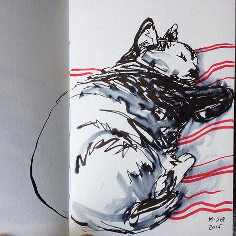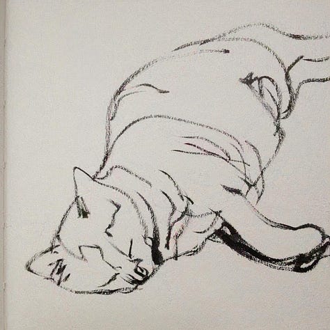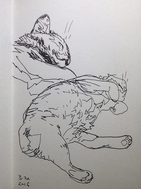 Hace unos años, cuando tenía la costumbre de dibujar del natural todos los días, dibujé a mi gata (y a los otros dos gatos de la familia) un montón de veces.